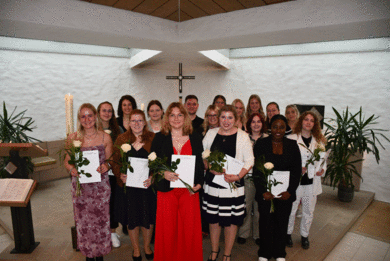 Quakenbrück. Nach vier Jahren verabschiedete die Berufsfachschule Pflege des Christlichen Krankenhauses den Examenskurs des dualen Studiums Bachelor of Science in Pflege. Der Studiengang schließt mit dem Erwerb der Berufsbezeichnung Pflegefachfrau /Pflegefachmann und dem gleichzeitigen I. akademischen Grad „Bachelor of Science“ ab. Die Examensfeier begann mit einem festlichen Gottesdienst und der Zeugnisübergabe in der Arche, anschließend wurde im Hörsaal gefeiert.