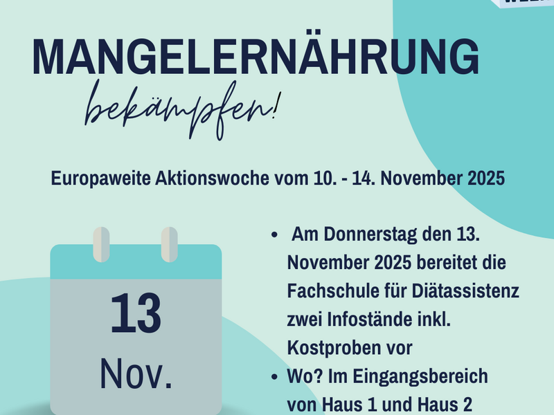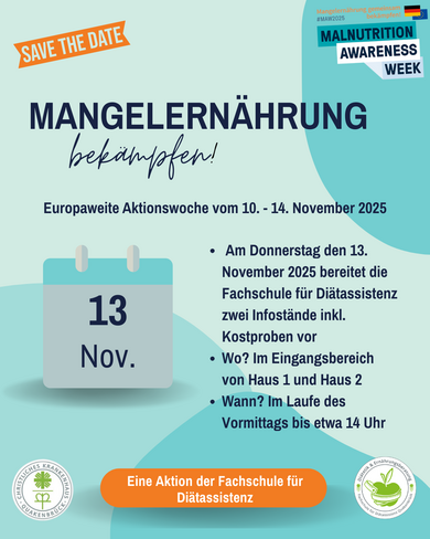Im Rahmen der "Malnutrition Awareness Week" (MAW) machten unsere Auszubildenden der Fachschule für Diätassistenz am 13. November 2025 bei uns am Christlichen Krankenhaus Quakenbrück auf das Thema Mangelernährung aufmerksam.