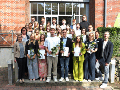 Besonders geehrt wurden bei der anschließenden Zeugnisübergabe der Jahrgangsbeste Tim Schlarmann, der alle Prüfungen mit einer 1,0 absolvierte, sowie mit einem kleinen Augenzwinkern Jan Hausfeld, der in der gesamten Ausbildungszeit keinen einzigen Tag gefehlt hatte.